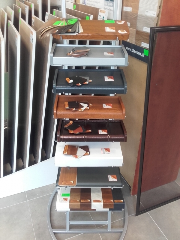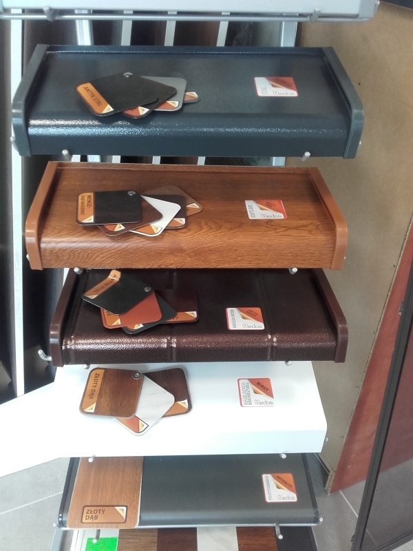 parapety zewnętrzne : aluminiowe - imitacja płytki , stalowe laminowane, aluminiowe, granitowe.